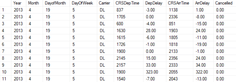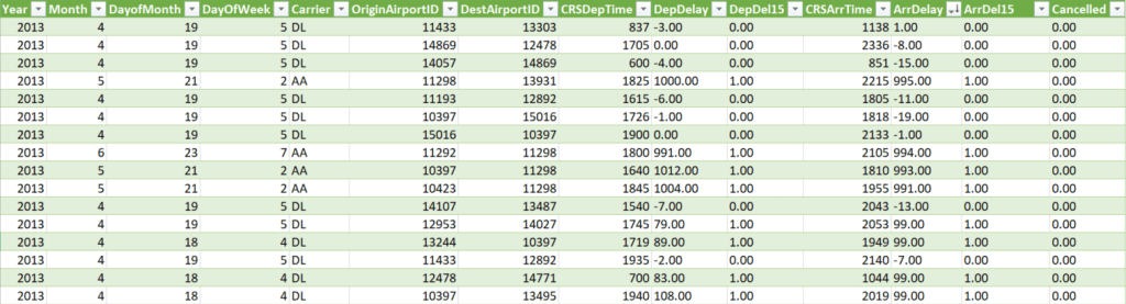 This is a standard dataset sample supplied by Microsoft describing airplane delays. For this exercise let’s make it our goal to determine what factors impact the delay of airplanes. We import this dataset into a local Database, and then we start our project!