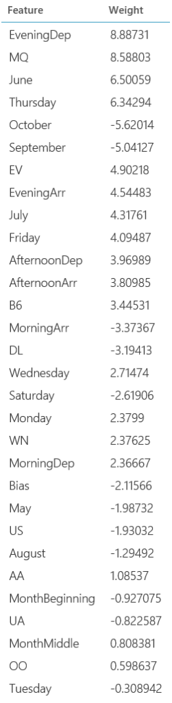We get a nice top view of what kind of variables would in this case be a good determinant. It’s important to realize how to interpret these results not being a statistician though. Based on experience, if we want to decrease our delays we should look at what we can do to improve the performance during the evenings, and we can see specific airlines do significantly worse than others. The Thursday and Friday flights seem to most susceptible to delays, and the moment in the month seems to be relatively irrelevant.